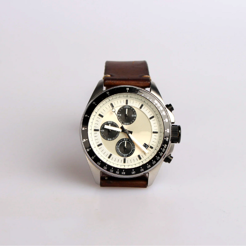 Ajoutez une touche d’élégance rétro à votre poignet avec cette montre chronographe au style vintage. Son cadran classique, associé à un bracelet en cuir brun, en fait un accessoire intemporel et sophistiqué.