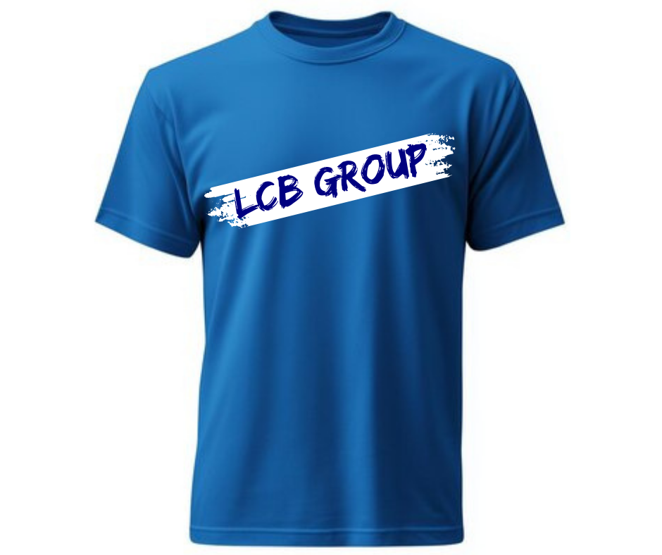 Un T-shirt bleu classique arborant fièrement l’écriture LCB GROUP sur une bande blanche au style dégradé. Conçu pour être à la fois confortable et élégant, ce T-shirt est parfait pour promouvoir l’identité de LCB GROUP. Le logo est également présent dans le dos, offrant une visibilité à 360° lors de vos événements ou sortie. Idéal pour afficher votre appartenance avec style.